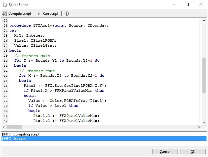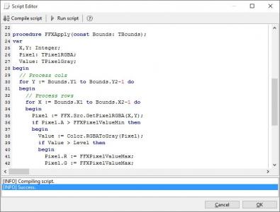 FilterFX allows you to create own custom filters from scripts which can be saved and executed again.